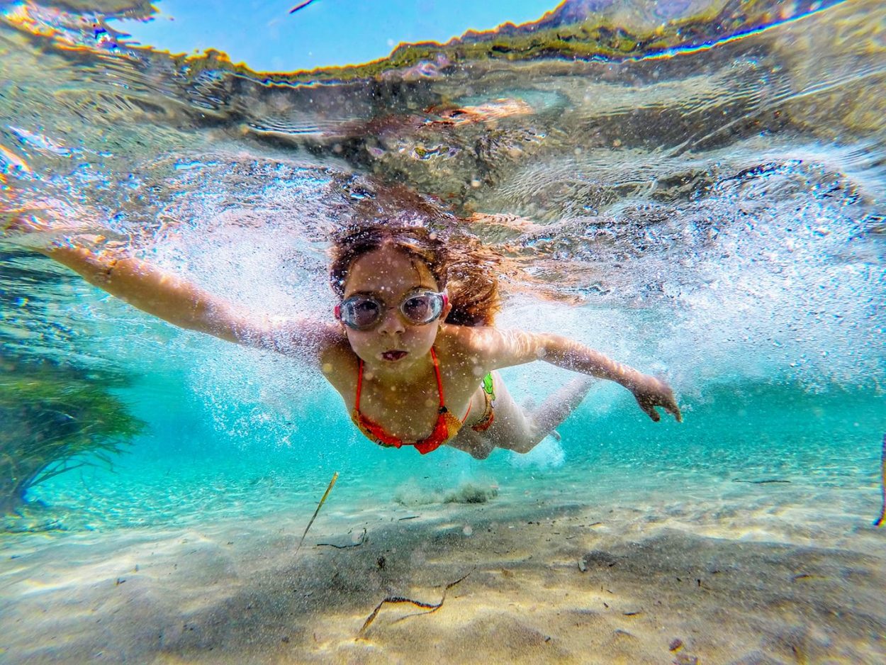 Kids will love this beautiful sandy beach, because it is very shallow so they will have plenty of space to run and splash around. Take snorkelling gear, rent a kayak or pedal boats, swim and dive or just hide in the shade of parasols or the local bar, while your kids roam around joyously.